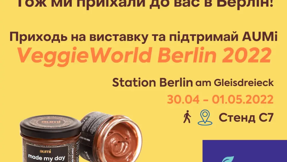 Приходь на круту виставку вегетаріанської та веганської продукції та підтримай AUMi! На стенді 7 будемо пригощати найсмачнішими горіховими пастами і десертами! Також багато смаків можна буде придбати на місці.