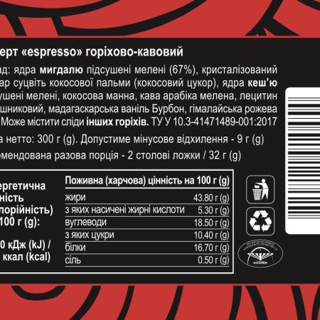 Десерт “Espresso” горіхово-кавовий, 300г, банка СКЛЯНА, мигдалева та кеш’ю паста з кавою і ваніллю