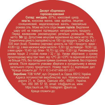 Десерт “Espresso” горіхово-кавовий, 50г, банка СКЛЯНА, мигдалева та кеш’ю паста з кавою і ваніллю