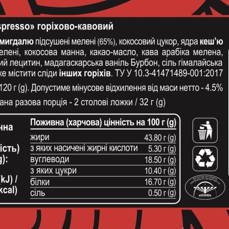 Десерт “Espresso” горіхово-кавовий, 120г, банка СКЛЯНА, мигдалева та кеш’ю паста з кавою і ваніллю