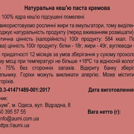 Кеш’ю паста кремова, 500г, відро, натуральна без домішок