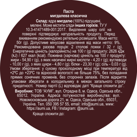 Мигдалева паста класична, 50г, банка СКЛЯНА, натуральна без домішок