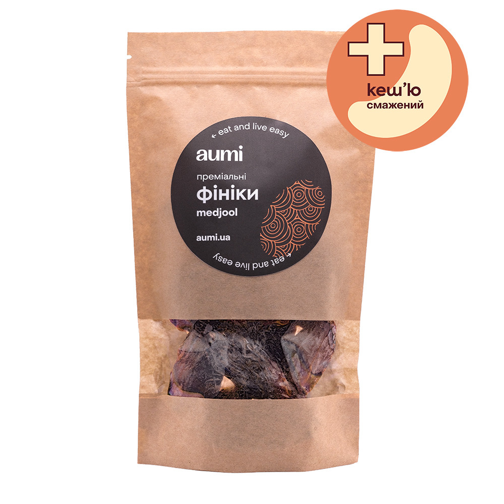 Обожнюємо експериментувати зі смаками. І виявили, що деякі горіхи ну просто ідеально поєднуються з фініками. Тому вирішили запустити серію таких суперсмаколиків. Акуратно виймаємо кісточку і додаємо смажений бразильський арахіс вищого сорту, який ми зазвичай використовуємо для виробництва нашої арахісової пасти. Смачнюща натуральна цукерка, зручний енергетичний перекус на роботу, у спортзал або подорож.