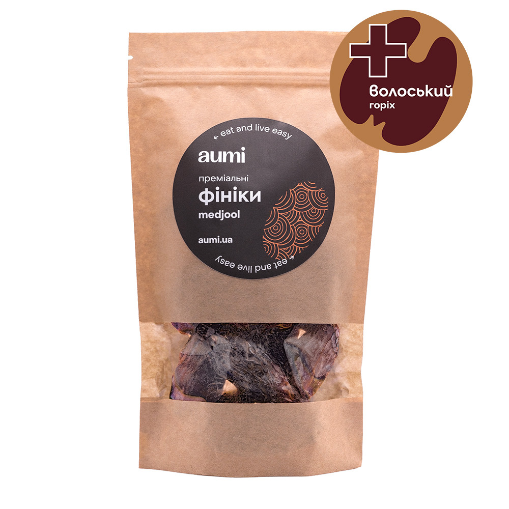 Фініки натуральні Medjool (Medjoul) з сушеним волоським горіхом, смаженим арахісом і кеш'ю. Упаковка 200г (Близько 7 великих фініків, начинених горіхами).
