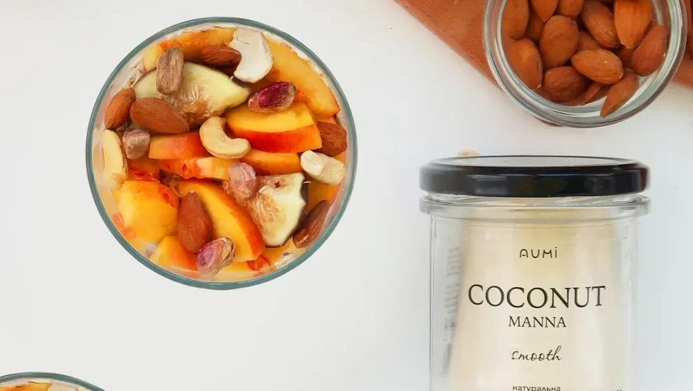 * 200г жирного кокосового молока (30-50г кокосової манни AUMI + 250г теплої води)